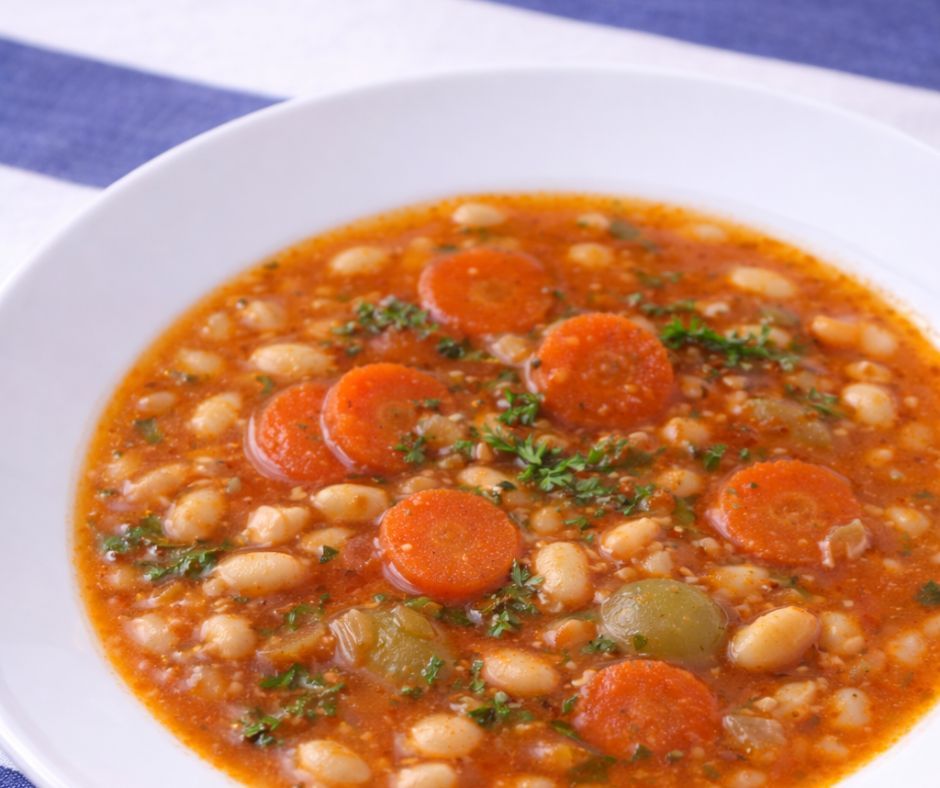 Tradycyjna grecka zupa z białej fasoli, pomidorów i oliwy z oliwek, doprawiona ziołami i czosnkiem. Sycąca i pełna śródziemnomorskiego smaku.