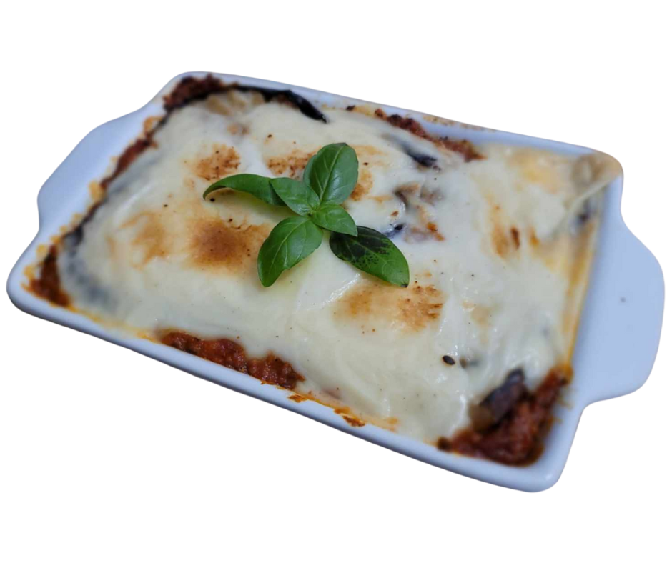 Tradycyjna grecka zapiekanka z ziemniaka, bakłażana i mielonego mięsa wołowego pod beszamelem, pełna smaków i aromatów śródziemnomorskich ziół i przypraw opakowania 1 zł